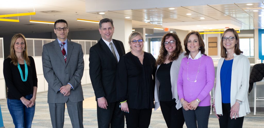 Smart Health Innovation Lab marketing team members from Aspire Ventures, Capital BlueCross, Clio Health, and Penn Medicine Lancaster General Health at the newly renovated lab.